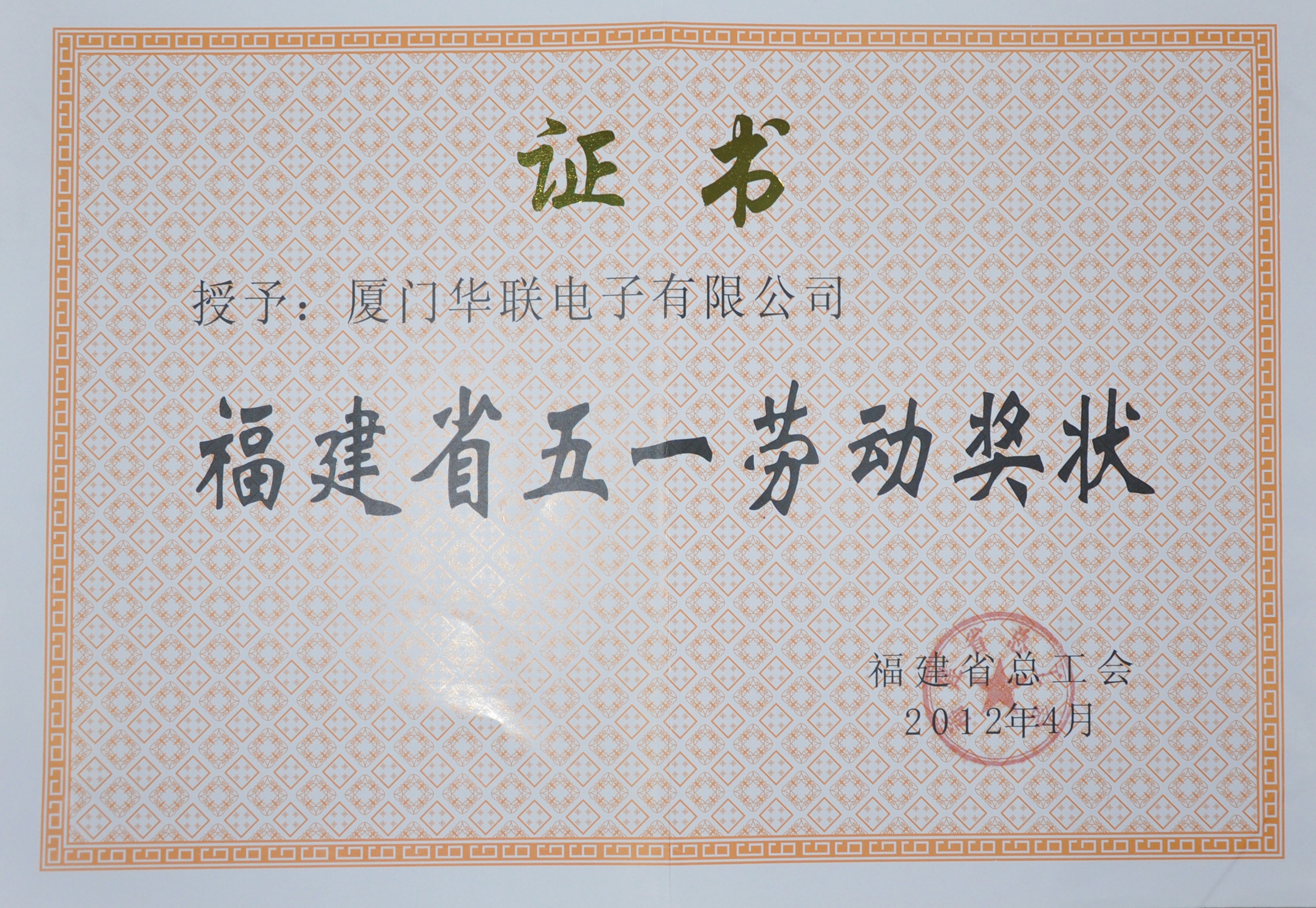 Fujian Provincial May 1st Labor Certificate